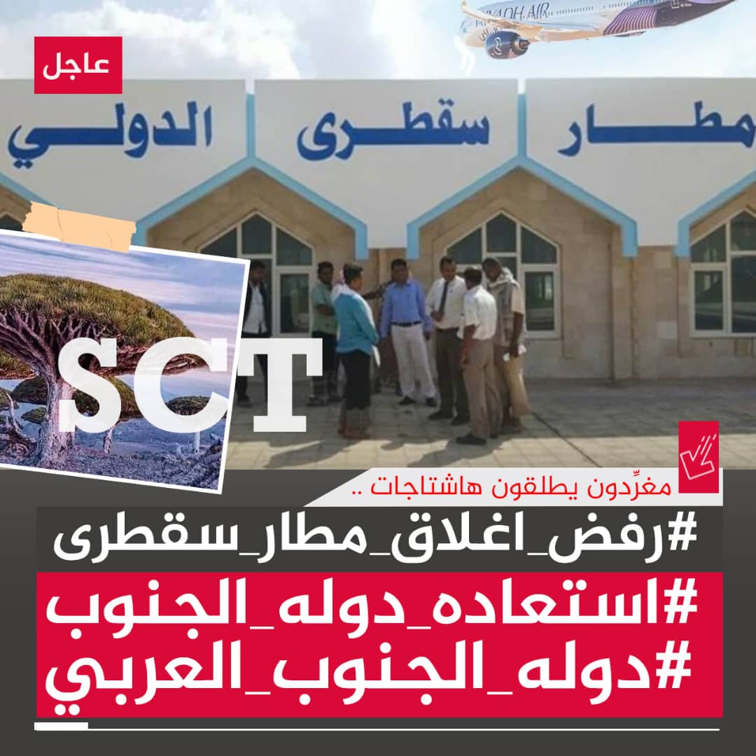 وأطلق سياسيون ونشطاء عصر اليوم 23 ديسمبر / كانون الأول 2025م، هاشتاجات #رفض_اغلاق_مطار_سقطرى و #دوله_الجنوب_العربي و #استعاده_دوله_الجنوب على منصات التواصل الاجتماعي.